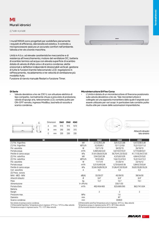 (1)Potenzialità frigorifera: Temperatura aria in ingresso: 27°C b.s./ 19°C b.u Max velocità