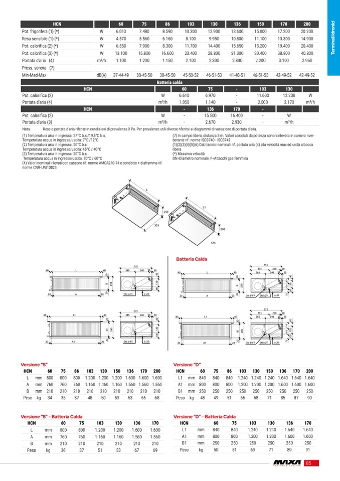 (1)(2)(3)(4)(5)(6) Dati tecnici nominali rif. portata aria (4) alla velocità max ed unità a bocca
