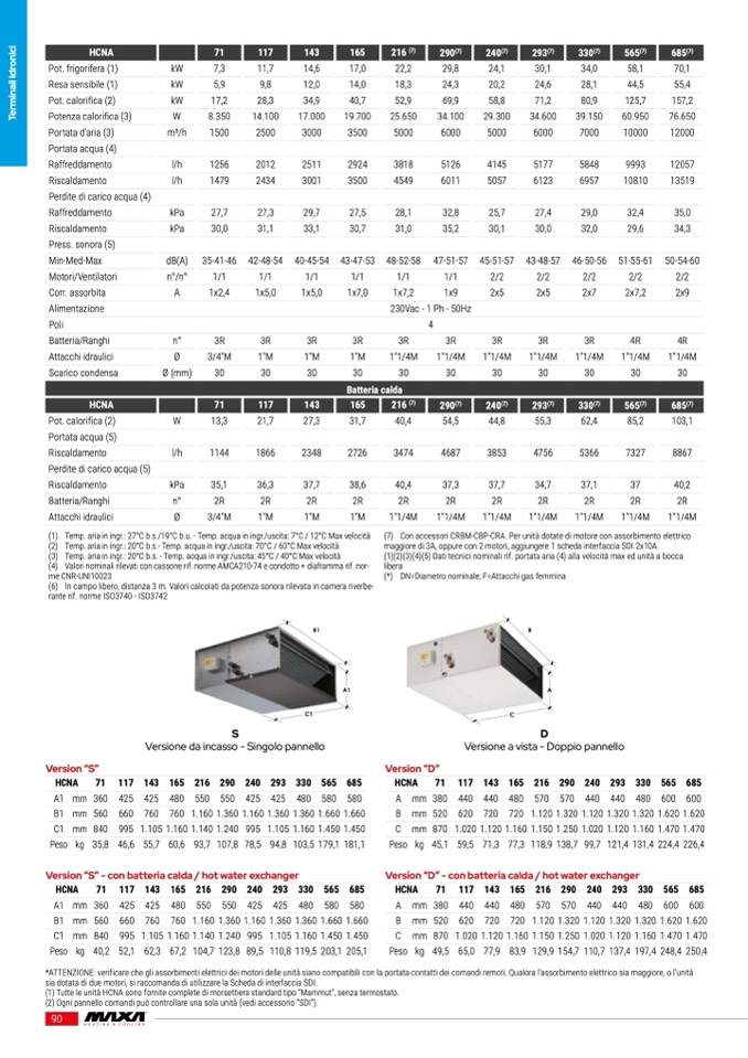 (1) Tutte le unità HCNA sono fornite complete di morsettiera standard tipo “Mammut”, senza termostato.
