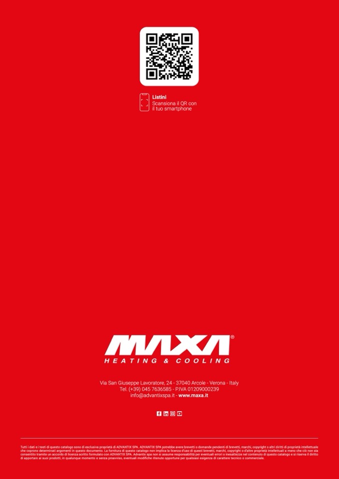 Tutti i dati e i testi di questo catalogo sono di esclusiva proprietà di ADVANTIX SPA. ADVANTIX SPA potrebbe avere brevetti o domande pendenti di brevetti, marchi, copyright o altri diritti di proprietà intellettuale