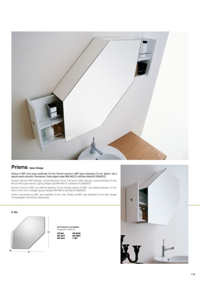 Mirrors: Mirror glass lead free. Lighting: Halogen light MM-IMQ-CE, certification EU 2006/95/CE.