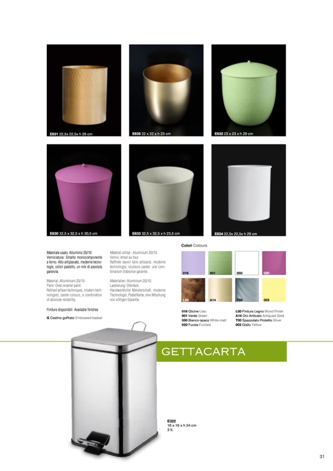 Finiture disponibili Available finishes