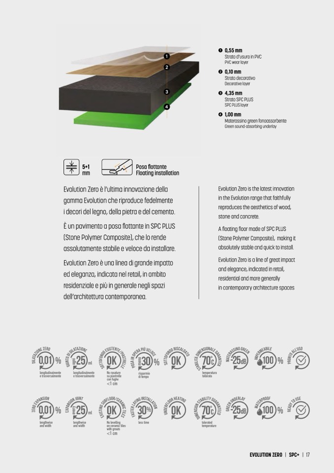 È un pavimento a posa flottante in SPC PLUS