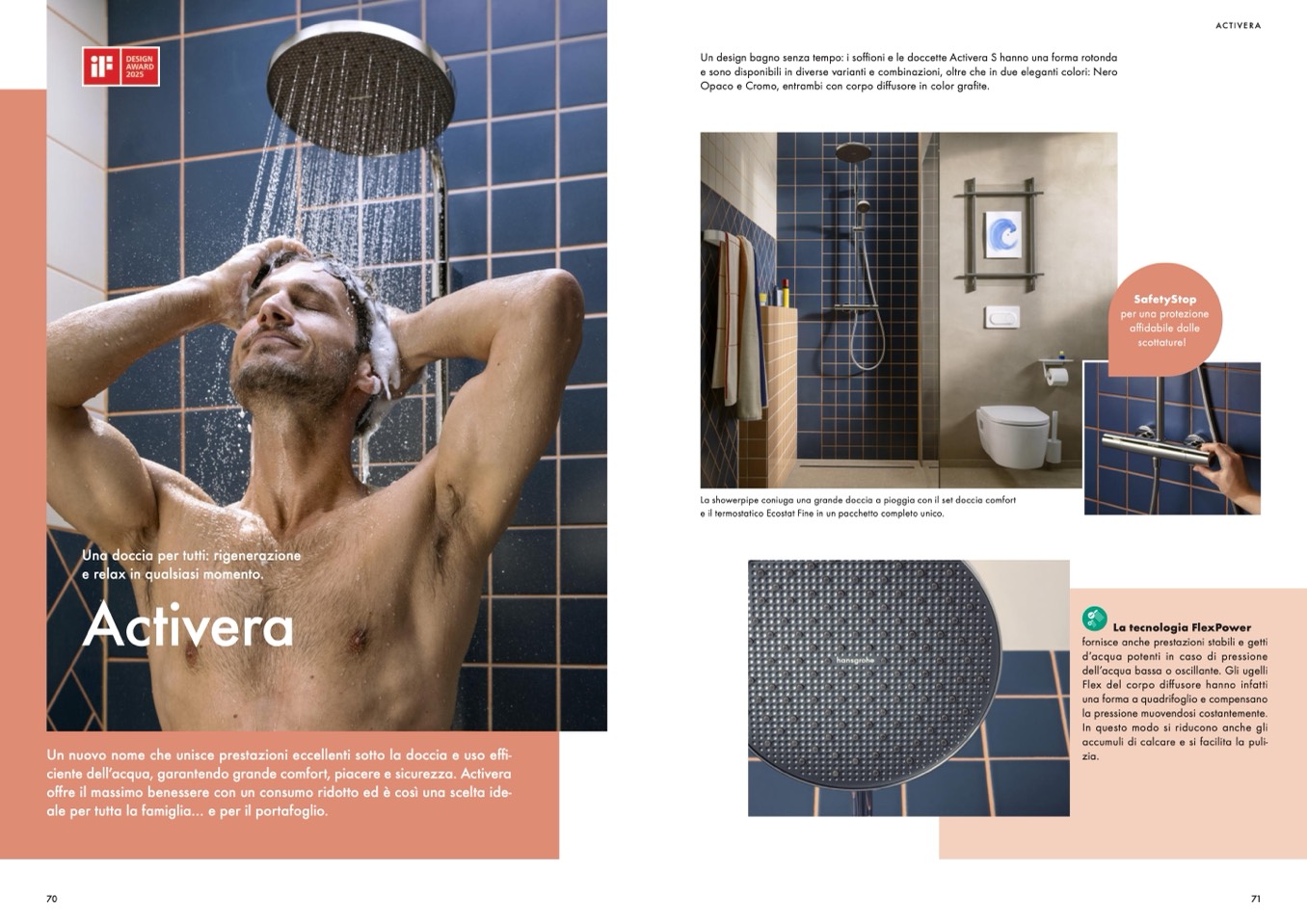 Un design bagno senza tempo: i soffioni e le doccette Activera S hanno una forma rotonda
