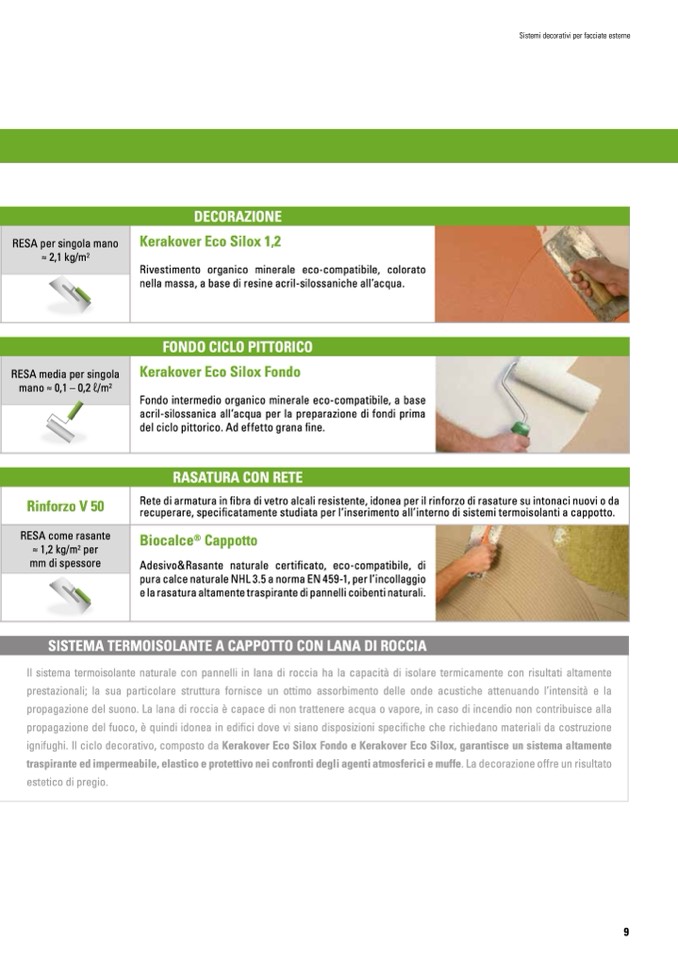 ignifughi. Il ciclo decorativo, composto da Kerakover Eco Silox Fondo e Kerakover Eco Silox, garantisce un sistema altamente