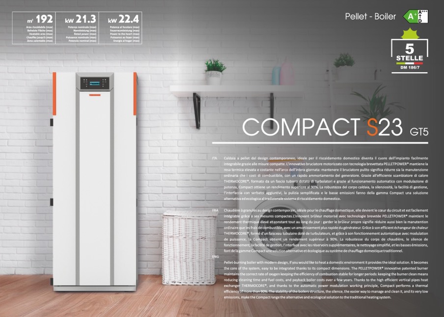 potenza, Compact ottiene un rendimento superiore al 90%. La robustezza del corpo caldaia, la silenziosit