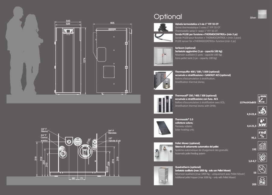 Additional pellet hopper (max 1000 Kg – only with Pellet Mover)