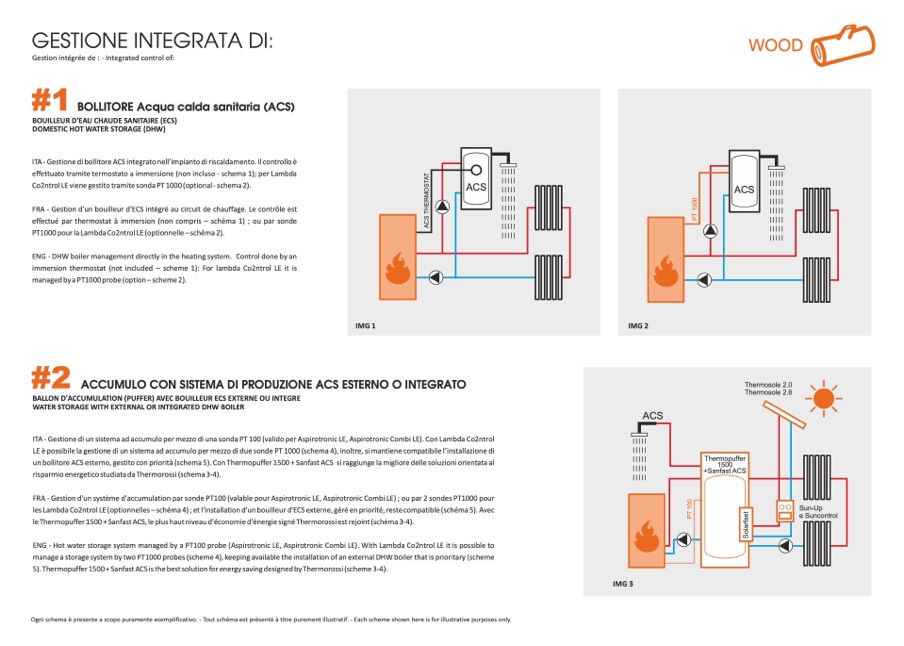 ENG - Hot water storage system managed by a PT100 probe (Aspirotronic LE, Aspirotronic Combi LE). With Lambda Co2ntrol LE it is possible to