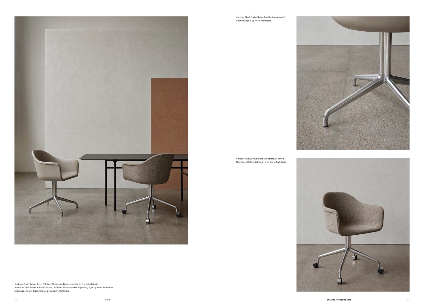 Harbour Chair, Swivel Base, Polished Aluminum/Nuance 40782, by Norm Architects