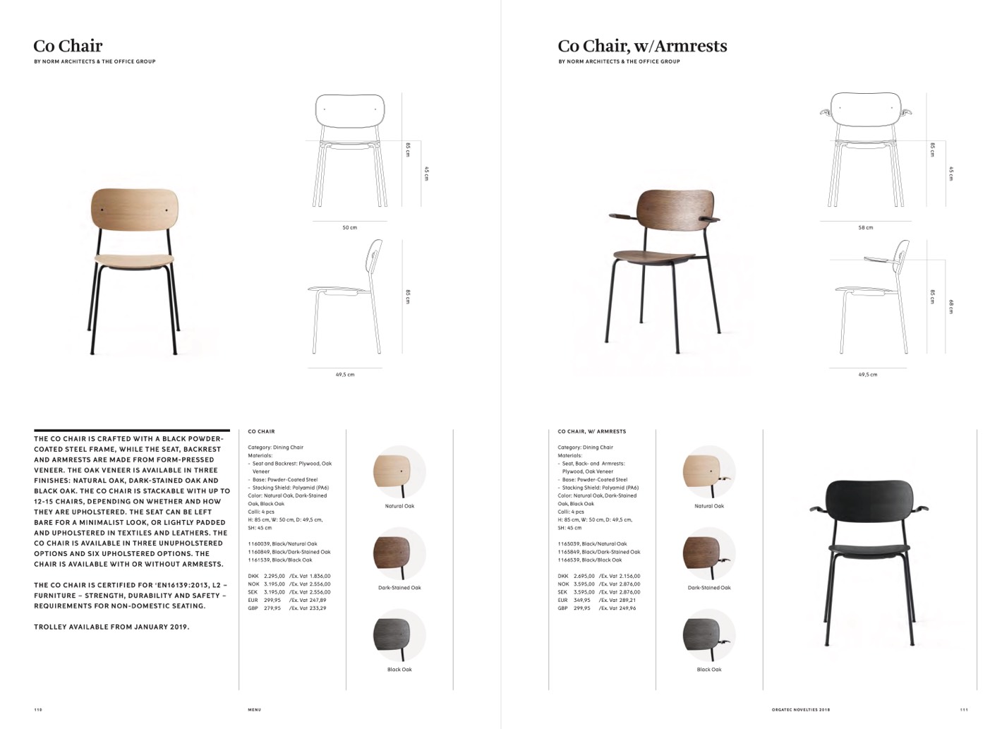 BLACK OAK. THE CO CHAIR IS STACKABLE WITH UP TO