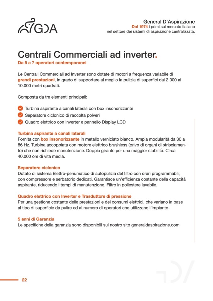 Le specifiche della garanzia sono disponibili sul nostro sito generaldaspirazione.com