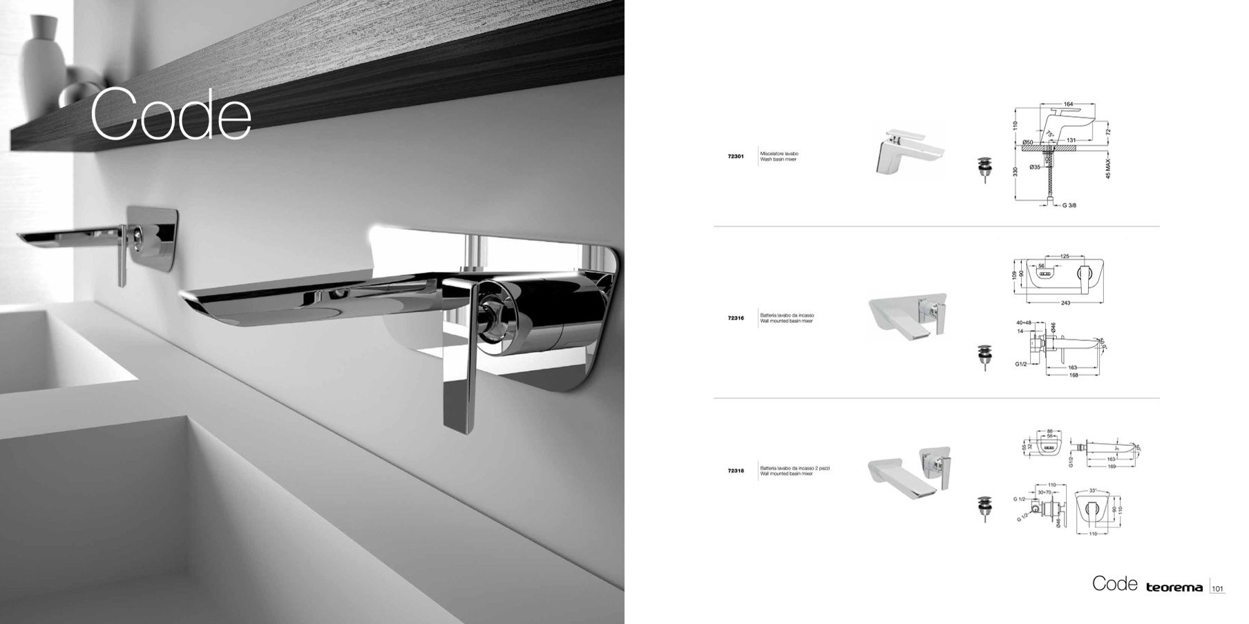 Batteria lavabo da incasso