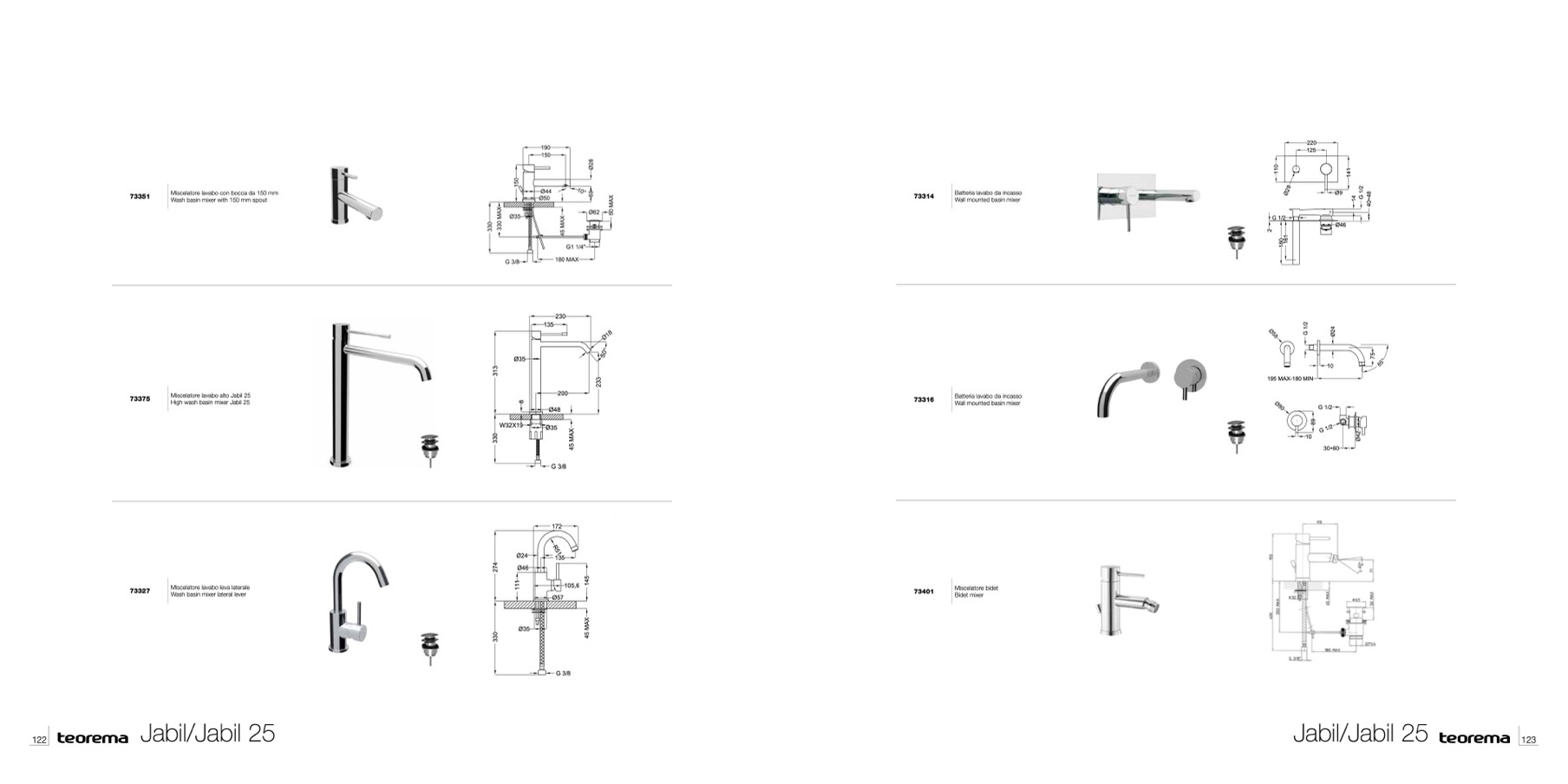 Batteria lavabo da incasso