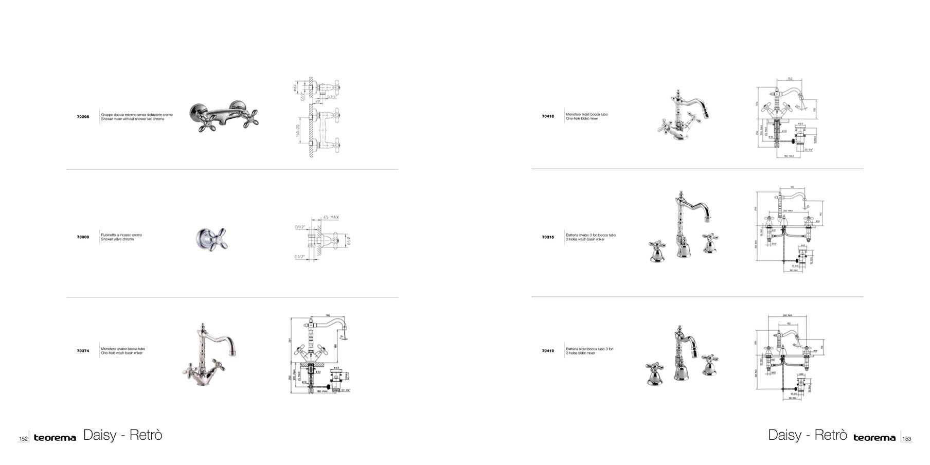 Batteria lavabo 3 fori bocca tubo
