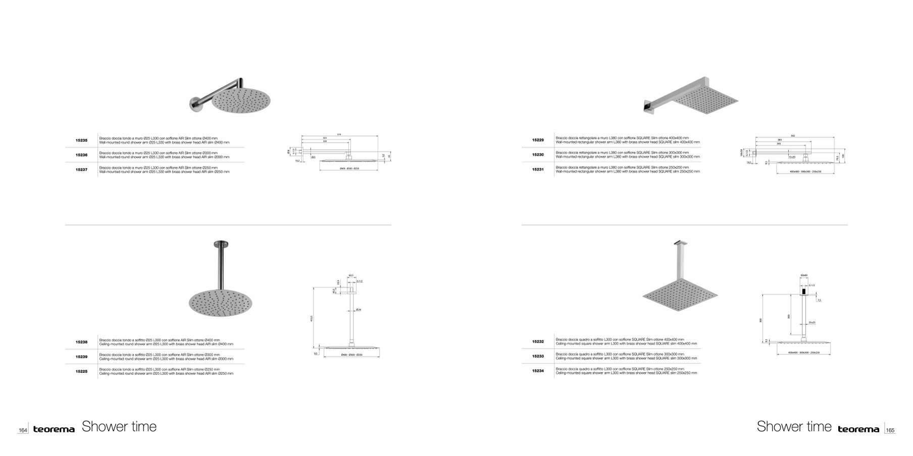 Braccio doccia tondo a soffitto Ø25 L300 con soffione AIR Slim ottone Ø400 mm