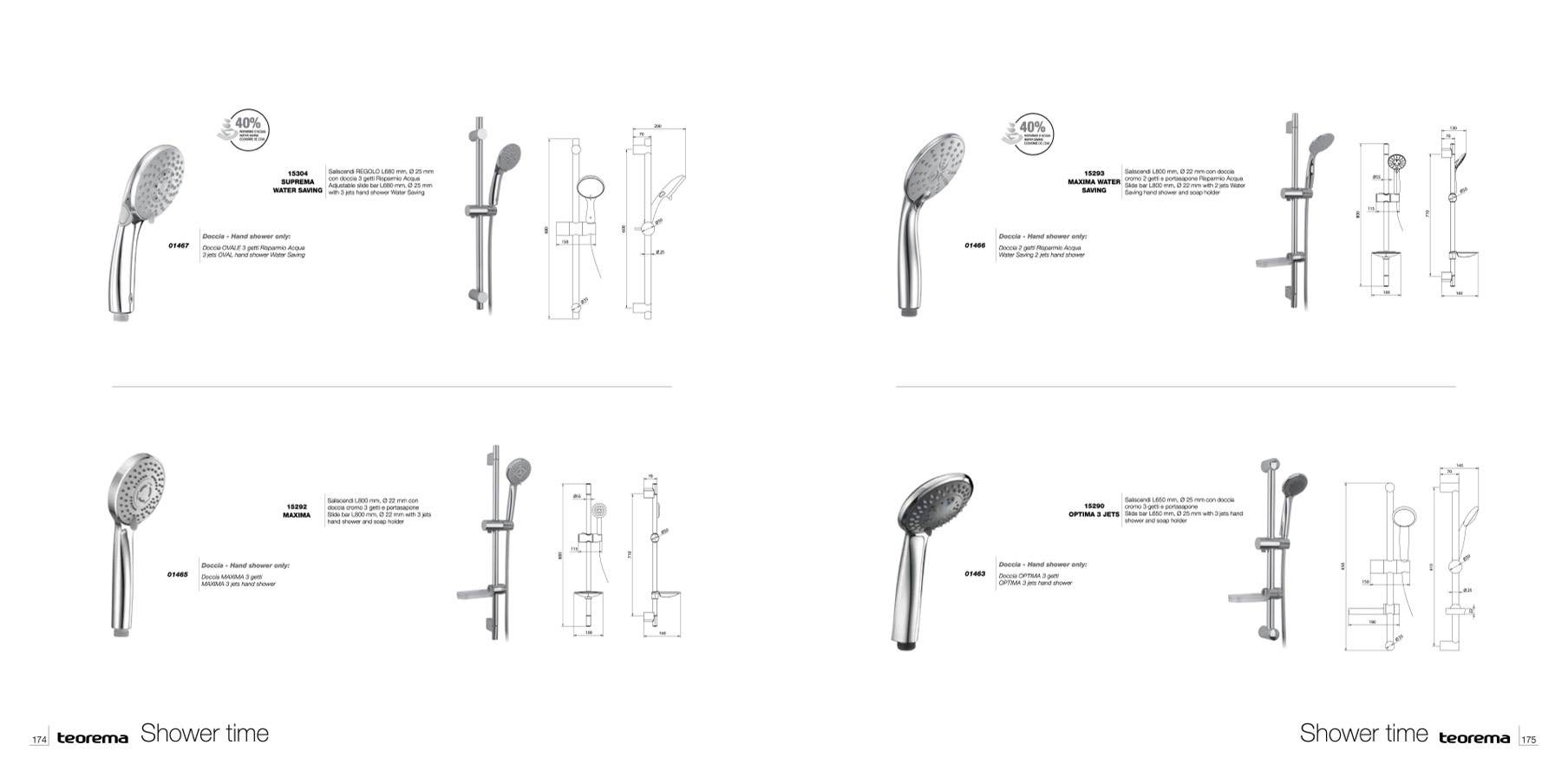 Saliscendi L800 mm, Ø 22 mm con doccia