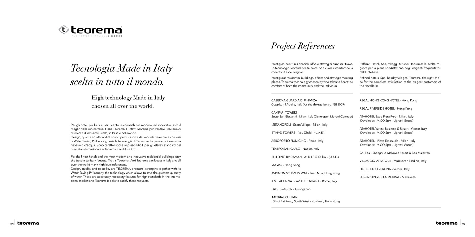 the best in sanitary faucets. That is Teorema. And Teorema can boast in Italy and all