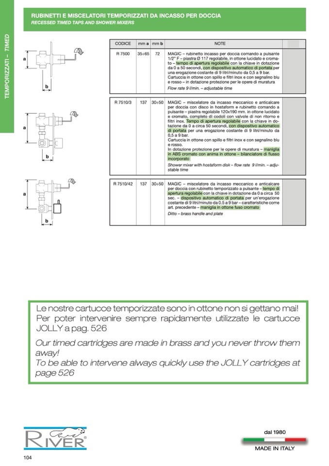 RUBINETTI E MISCELATORI TEMPORIZZATI DA INCASSO PER DOCCIA