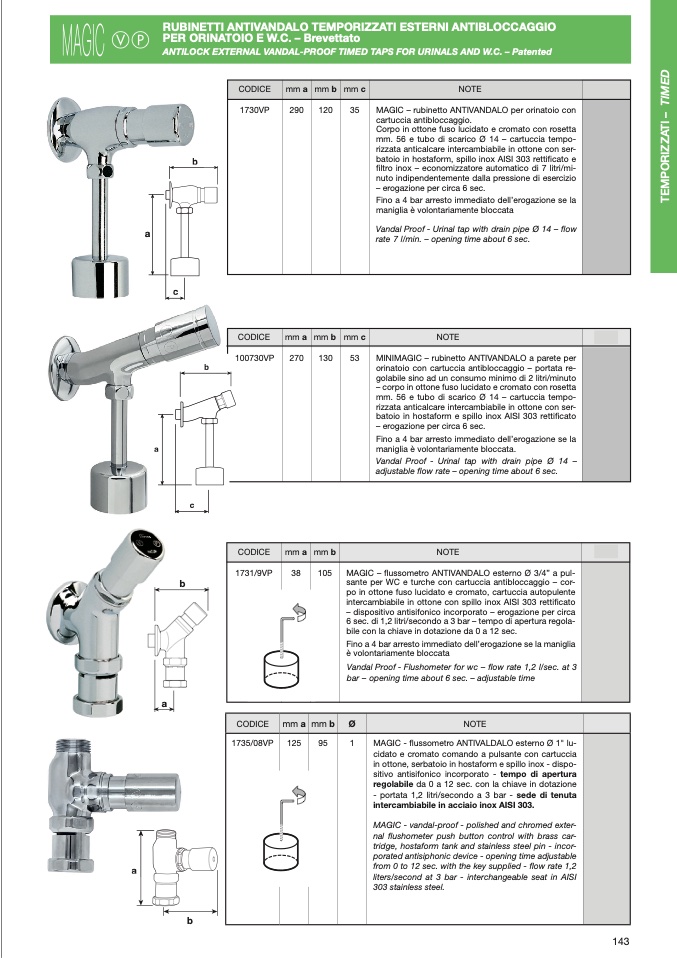 ANTILOCK EXTERNAL VANDAL-PROOF TIMED TAPS FOR URINALS AND W.C. – Patented