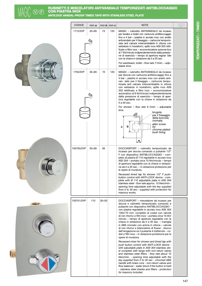 RUBINETTI E MISCELATORI ANTIVANDALO TEMPORIZZATI ANTIBLOCCAGGIO