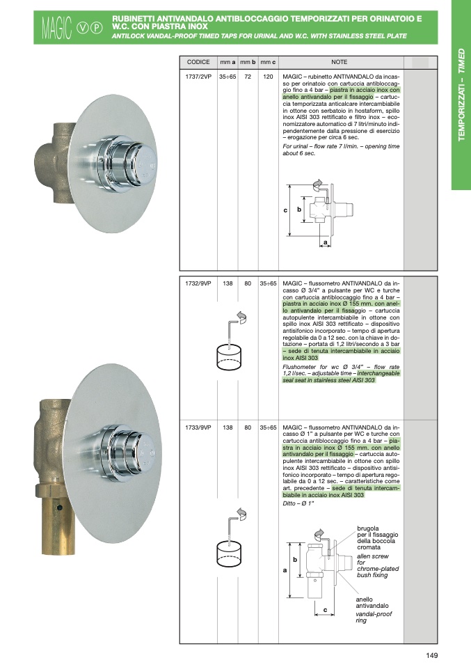 ANTILOCK VANDAL-PROOF TIMED TAPS FOR URINAL AND W.C. WITH STAINLESS STEEL PLATE