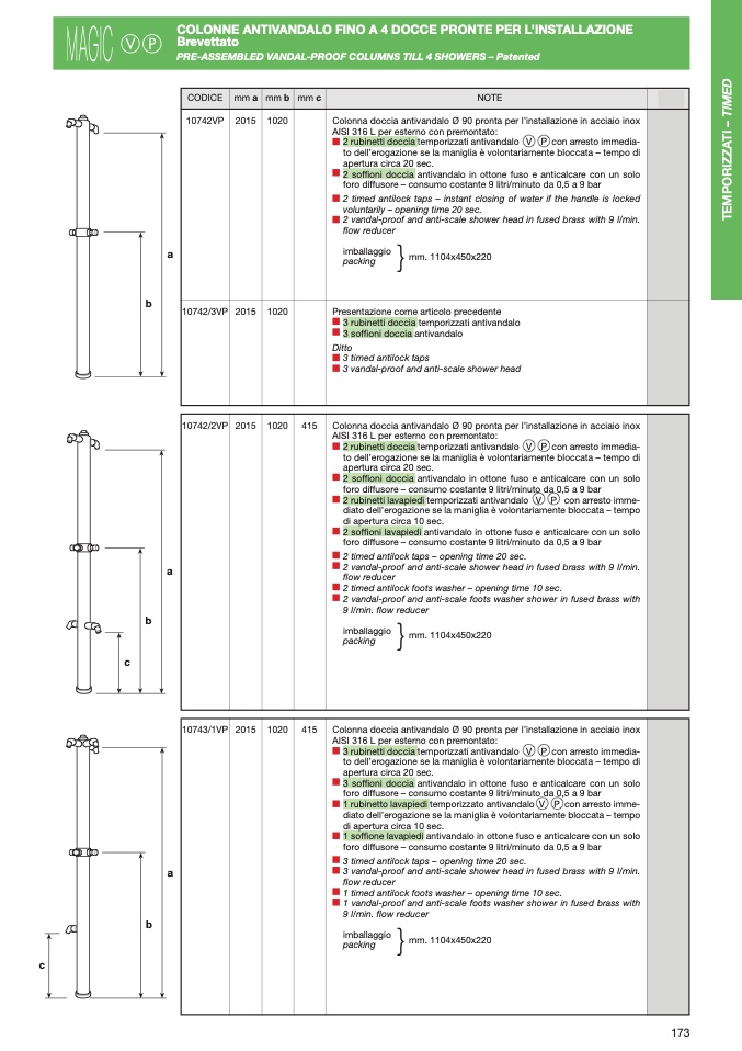 COLONNE ANTIVANDALO FINO A 4 DOCCE PRONTE PER L’INSTALLAZIONE