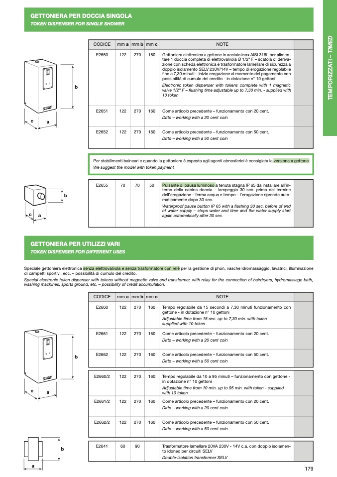 Per stabilimenti balneari e quando la gettoniera è esposta agli agenti atmosferici