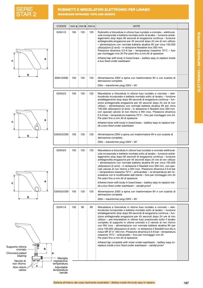 Infrared mixer with body in fused brass – battery easy to replace insi-