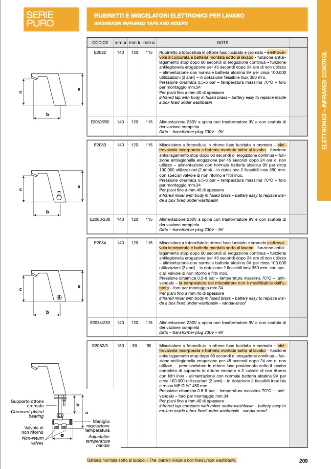 Infrared mixer with body in fused brass – battery easy to replace insi-