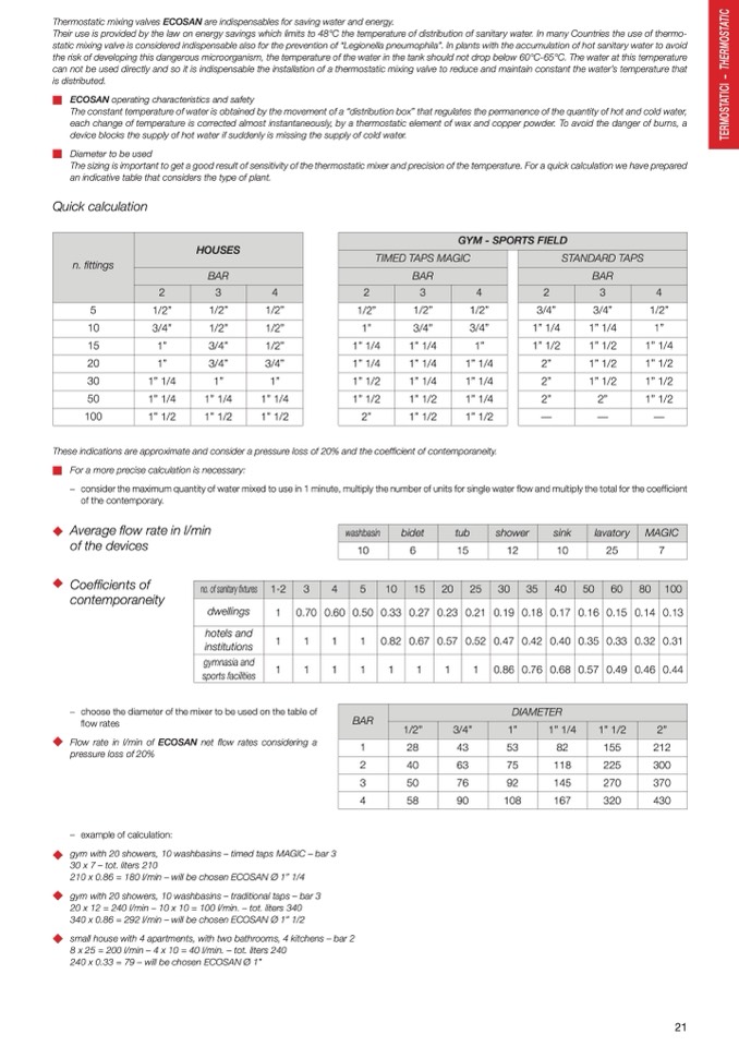 – consider the maximum quantity of water mixed to use in 1 minute, multiply the number of units for single water flow and multiply the total for the coefficient