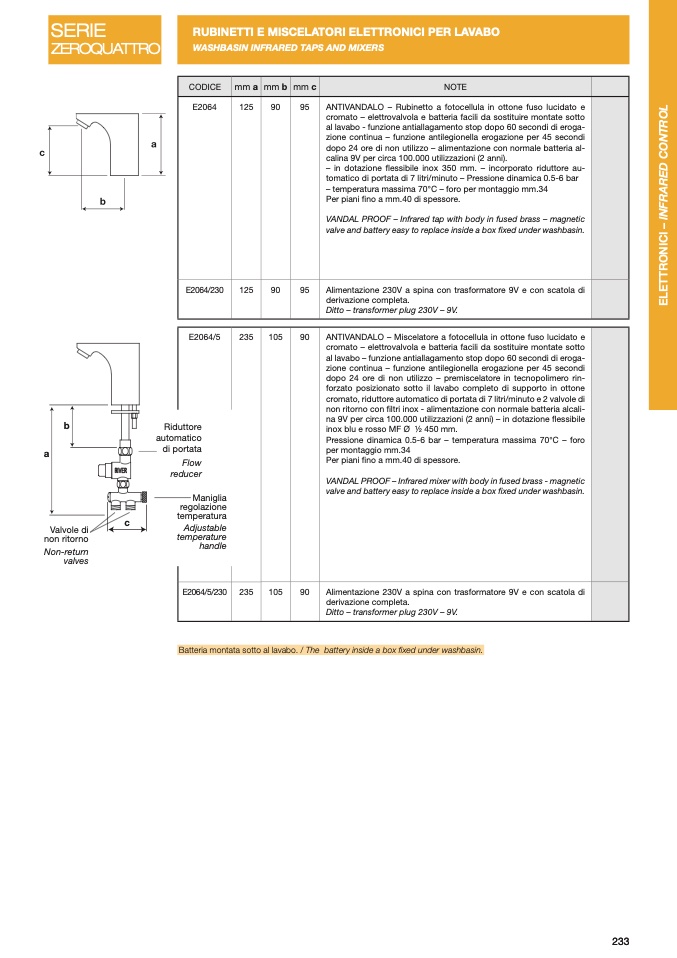 RUBINETTI E MISCELATORI ELETTRONICI PER LAVABO