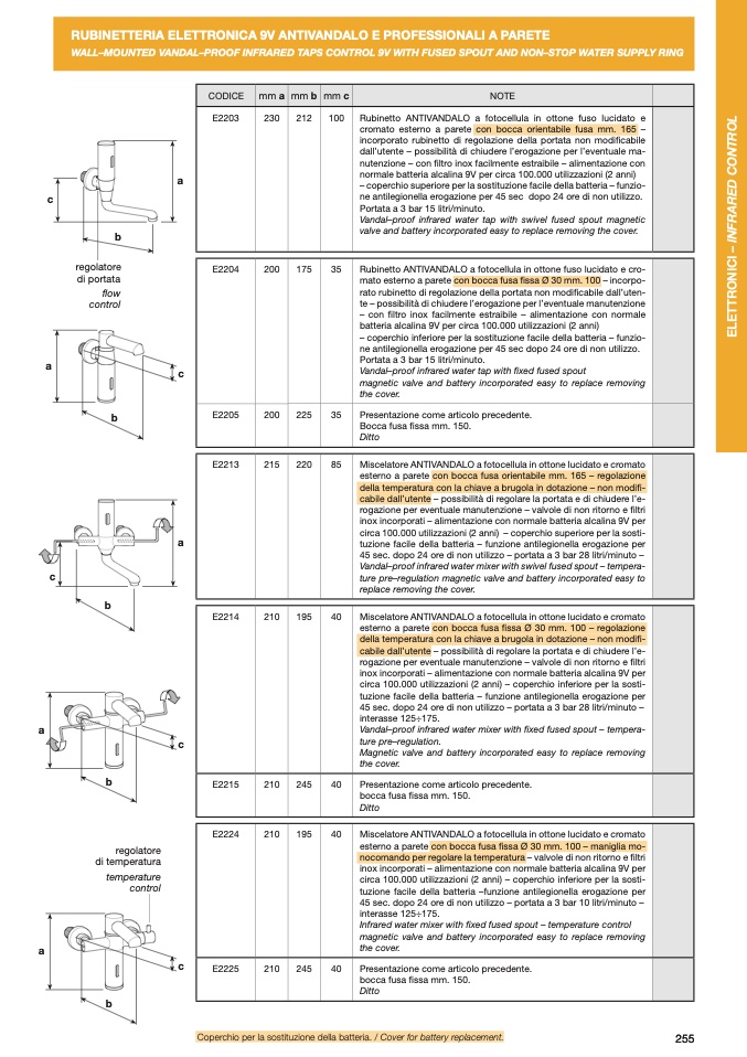 RUBINETTERIA ELETTRONICA 9V ANTIVANDALO E PROFESSIONALI A PARETE