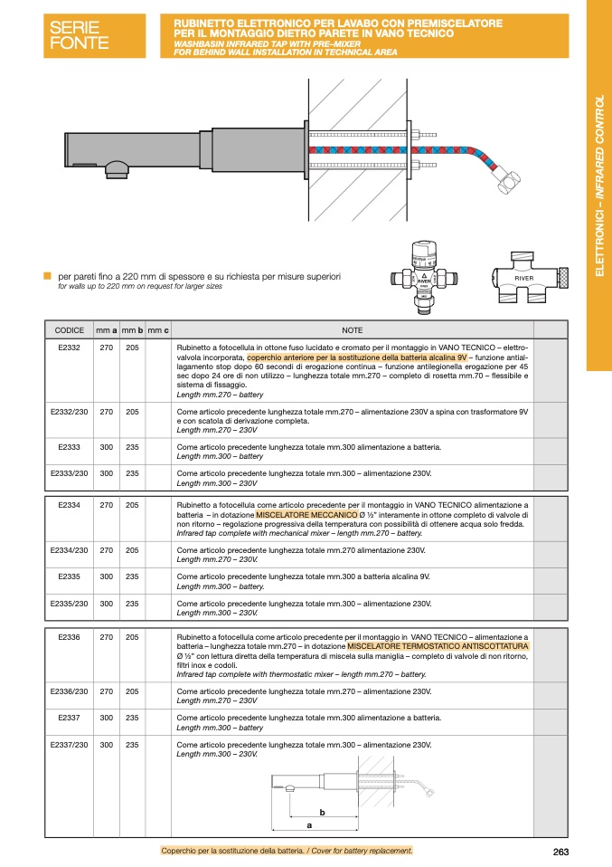 Rubinetto a fotocellula come articolo precedente per il montaggio in VANO TECNICO – alimentazione a
