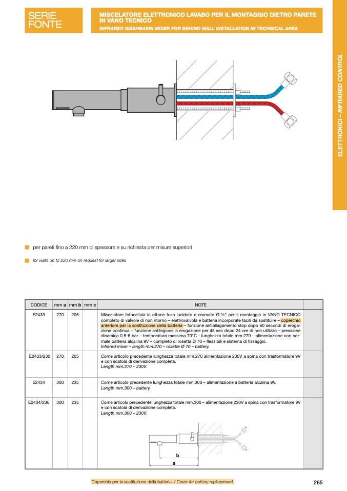 Infrared mixer – length mm.270 – rosette Ø 70 – battery.