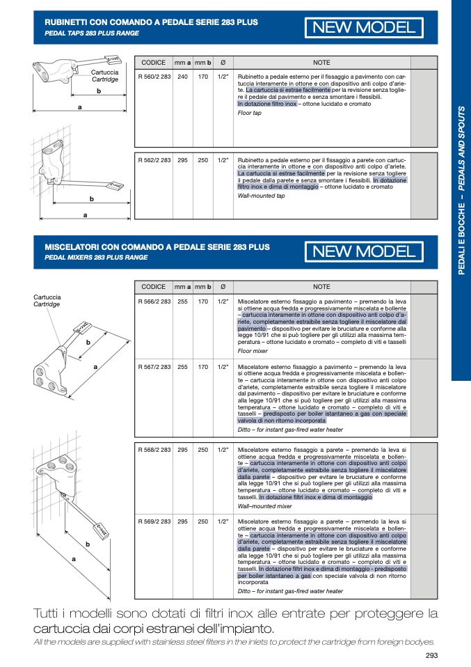 RUBINETTI CON COMANDO A PEDALE SERIE 283 PLUS