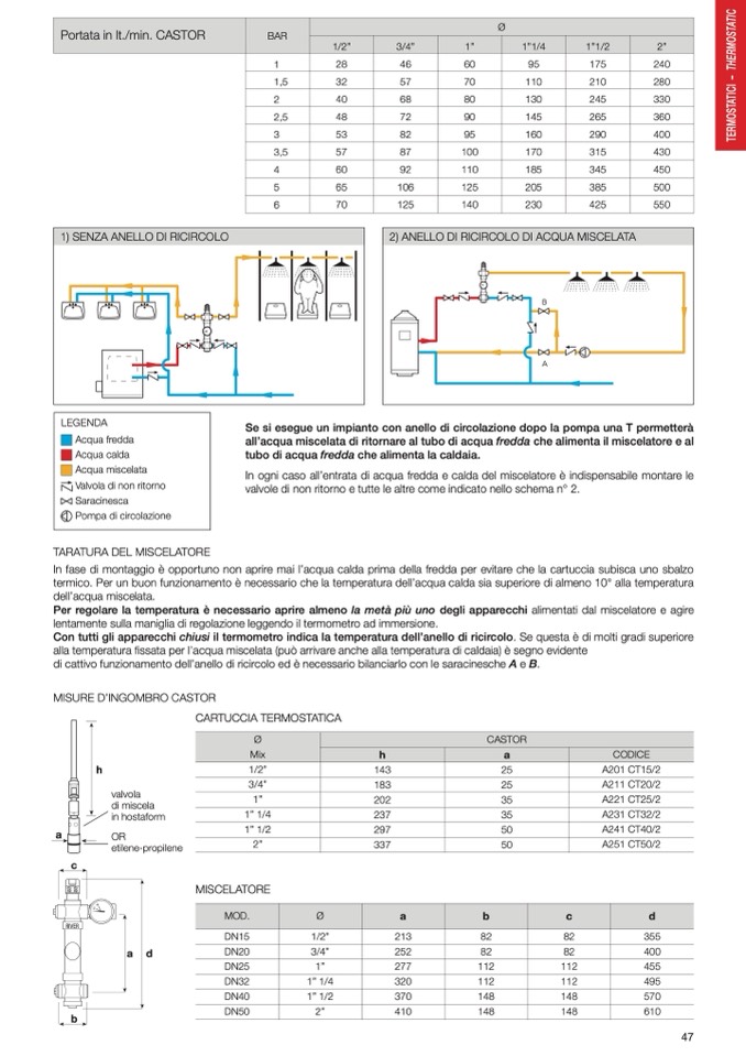 termico. Per un buon funzionamento è necessario che la temperatura dell’acqua calda sia superiore di almeno 10° alla temperatura