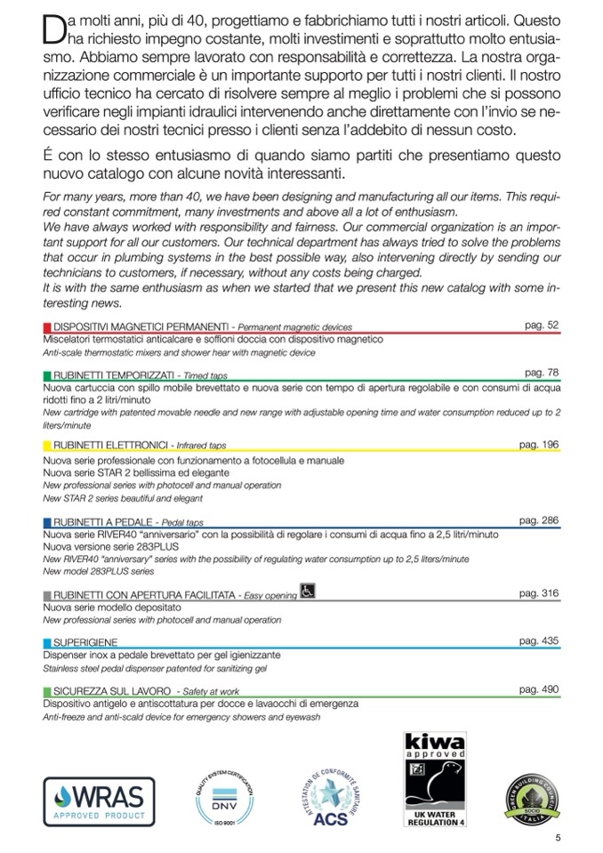 Nuova cartuccia con spillo mobile brevettato e nuova serie con tempo di apertura regolabile e con consumi di acqua