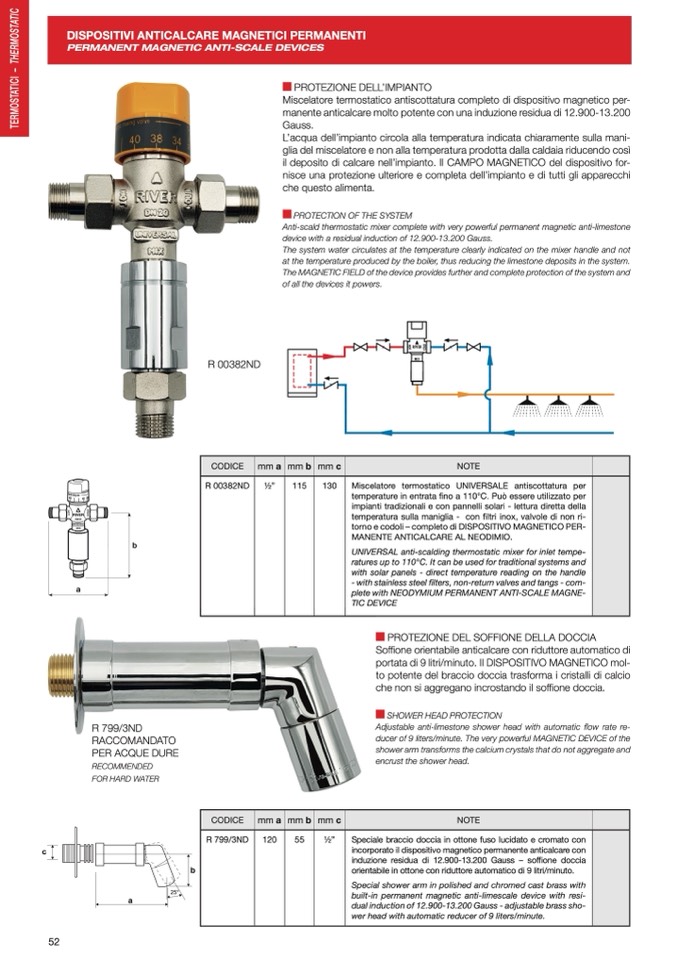 Anti-scald thermostatic mixer complete with very powerful permanent magnetic anti-limestone