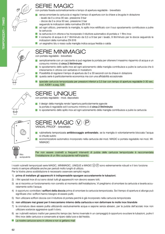I nostri rubinetti temporizzati serie MAGIC, MINIMAGIC, UNIQUE e MAGIC V P sono estremamente robusti e il loro funziona