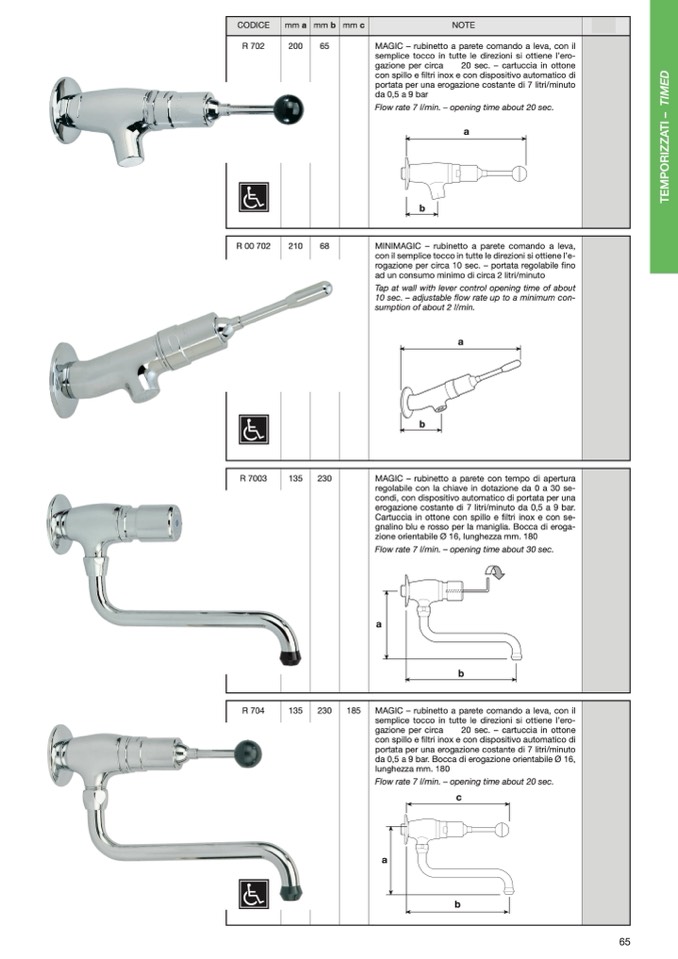 da 0,5 a 9 bar. Bocca di erogazione orientabile Ø 16,