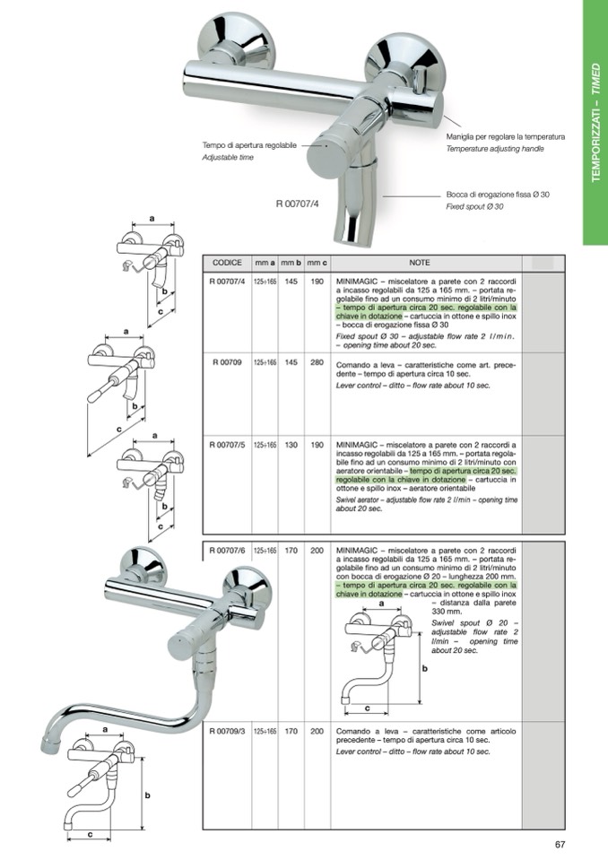 MINIMAGIC – miscelatore a parete con 2 raccordi