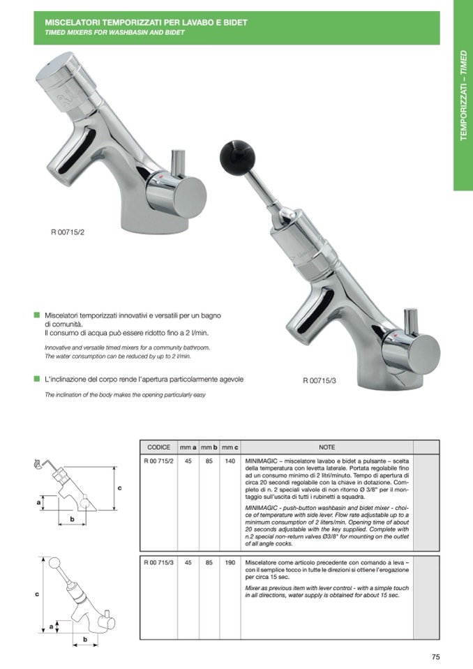 TIMED MIXERS FOR WASHBASIN AND BIDET