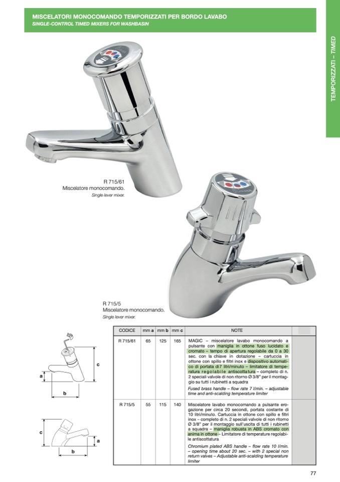 SINGLE-CONTROL TIMED MIXERS FOR WASHBASIN