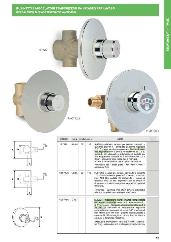 BUILT-IN TIMED TAPS AND MIXERS FOR WASHBASIN