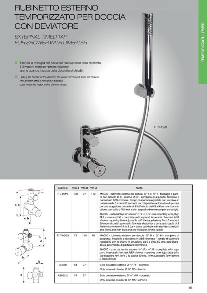 MAGIC - external tap for shower 1⁄2” M x 1⁄2” M - complete with sup-