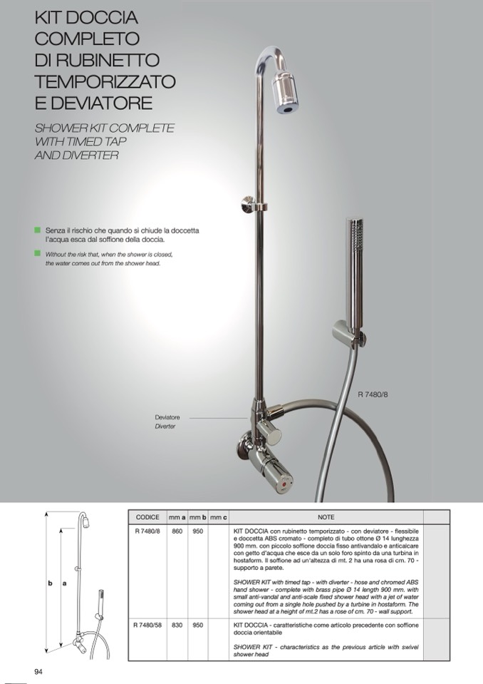 KIT DOCCIA con rubinetto temporizzato - con deviatore - flessibile