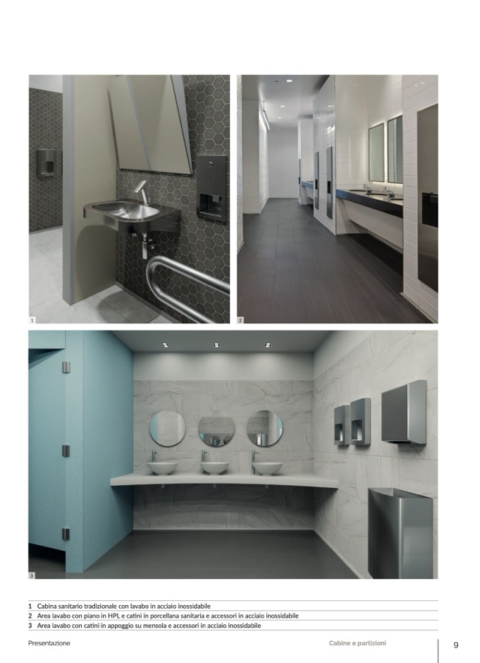 2 Area lavabo con piano in HPL e catini in porcellana sanitaria e accessori in acciaio inossidabil
