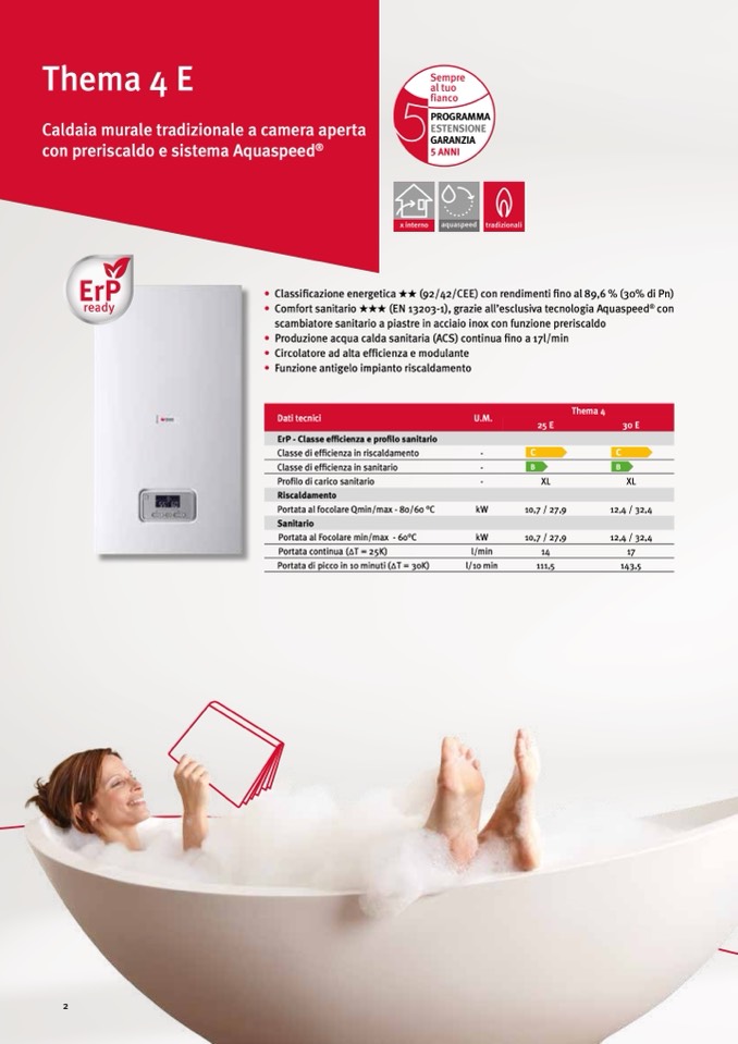 • Produzione acqua calda sanitaria (ACS) continua fino a 17l/min