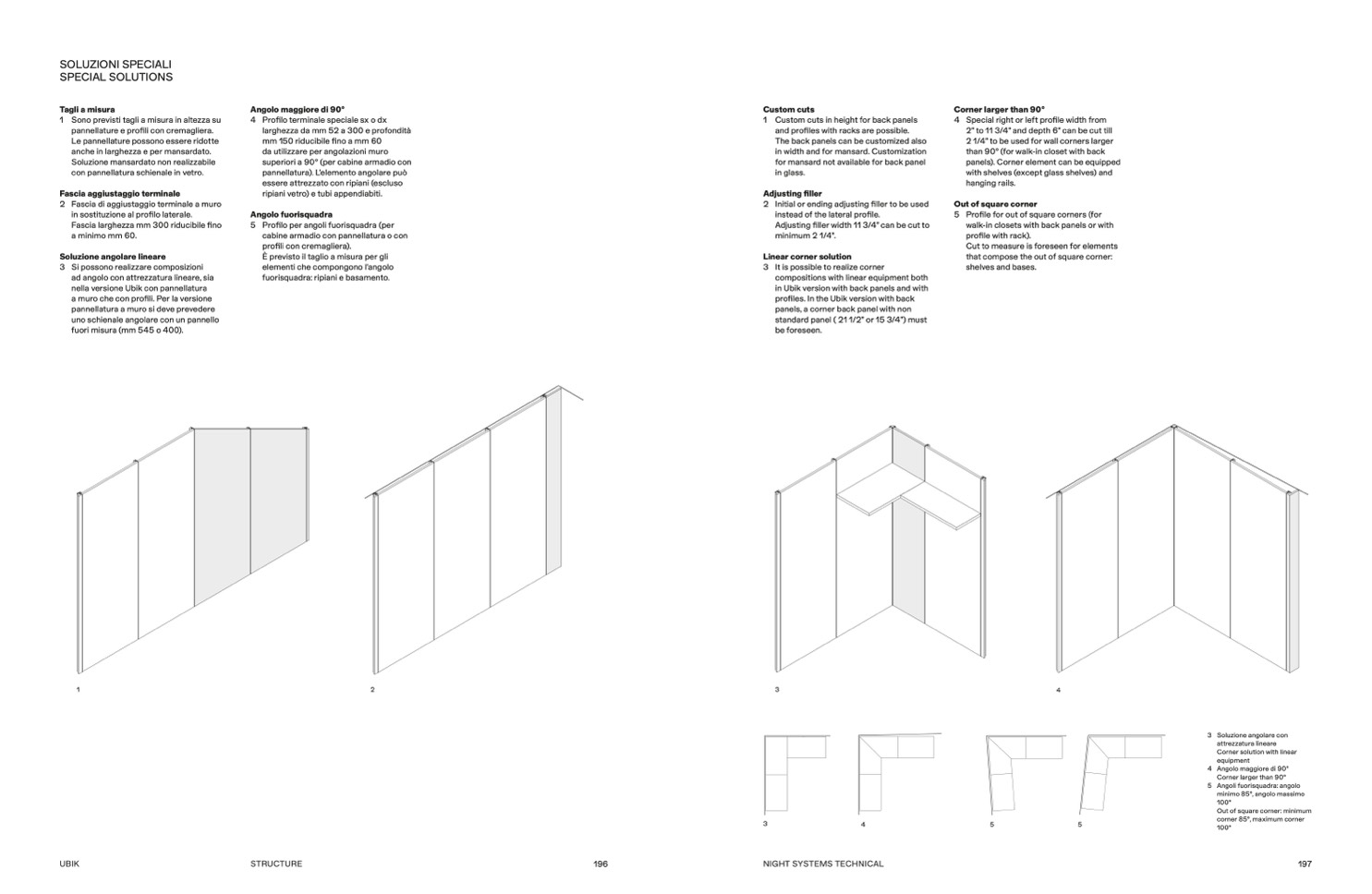 superiori a 90° (per cabine armadio con