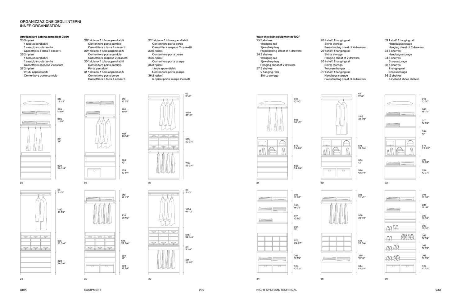 Walk-in closet equipment h 102”